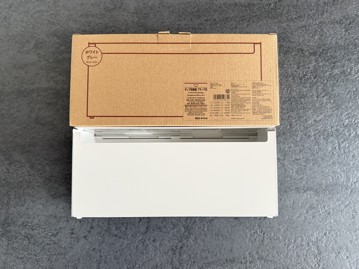 購入品②:スチールタップ収納箱フラップ式・ホワイトグレー